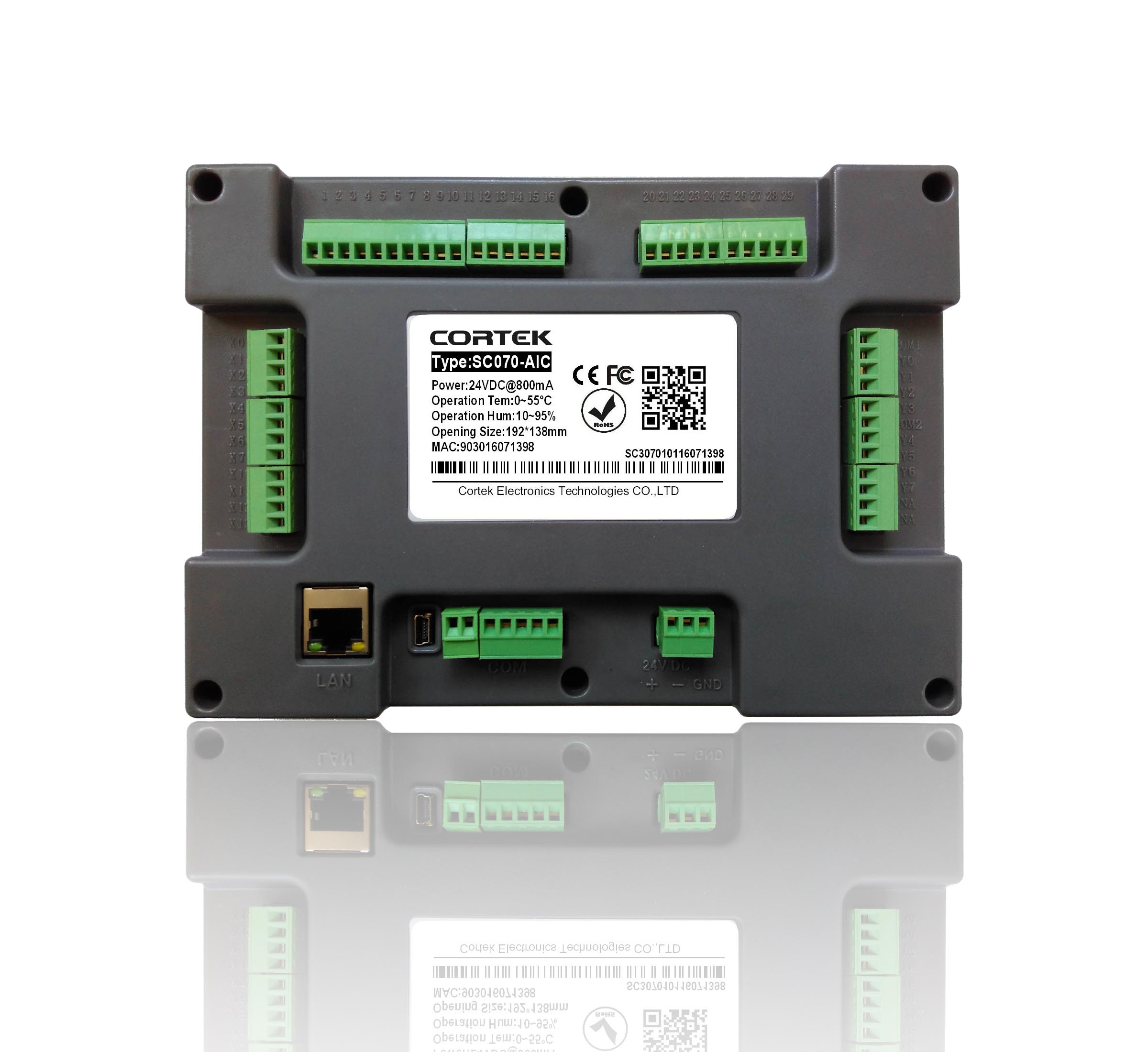 SC070-AIC 我公司發(fā)揮技術(shù)優(yōu)勢,為特定行業(yè)客戶開發(fā)的一款性價(jià)比非常高的專屬產(chǎn)品。產(chǎn)品將工業(yè)觸摸屏和PLC兩部分功能完美結(jié)合,組態(tài)采用我公司自行研發(fā)的組態(tài)軟件CORWARE V2.9.8,控制器邏輯采用常用的梯形圖方式編寫,兼容三菱FX1N。