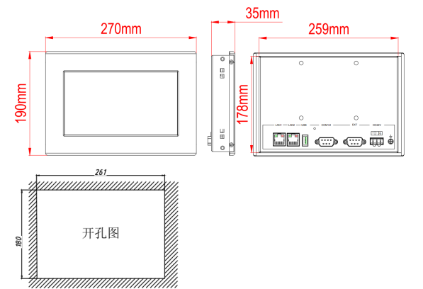 機(jī)柜開(kāi)孔:259mm×178mm
